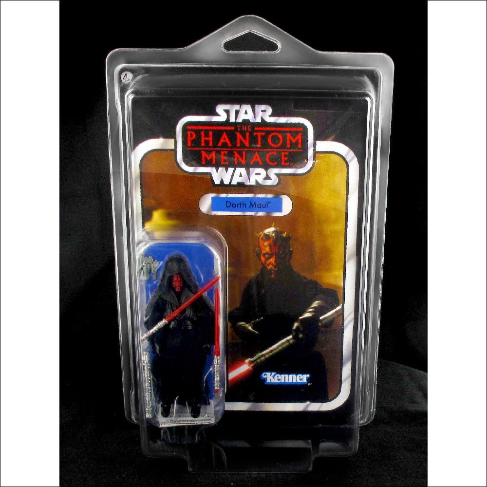 The easy-to-handle two-piece case is made of eco-friendly PET and fits perfect for standard blistered Kenner and Hasbro (Star Wars) figures since 1977.