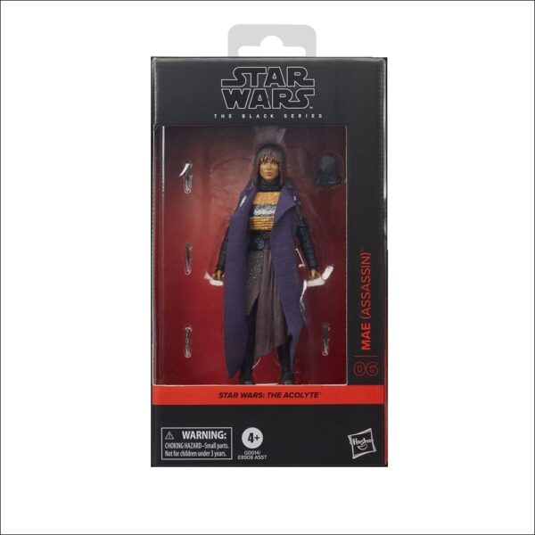 This Star Wars action figure is detailed to look like Mae (Assassin) from the Disney+ series Star Wars: The Acolyte.