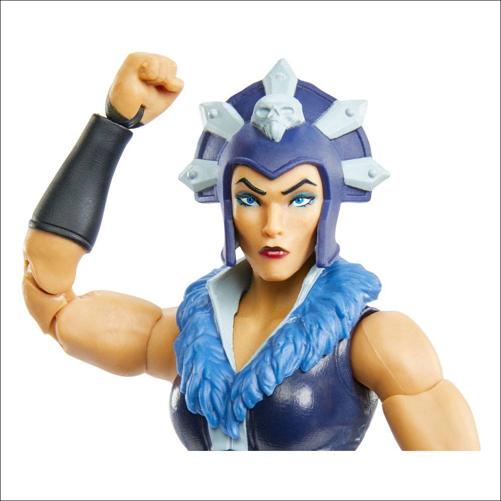 Evil-Lyn is highly articulated (over 30 points of articulation) for extreme pose-ability and comes with several accessories, like an alternate head, staff, bag and alternate hands.