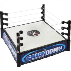 This authentic, approximately 30-cm wide x 30-cm long (12-inch wide x 12-inch long) ring features pro-tension ropes for launching attacks and a spring-loaded mat for extra bounce from slams. It’s two events in one with RAW and Smackdown apron stickers. Play out matches with WWE Basic, Elite Collection, and Ultimate Edition action figures (sold separately)! Get ready to rumble with this wrestling ring!