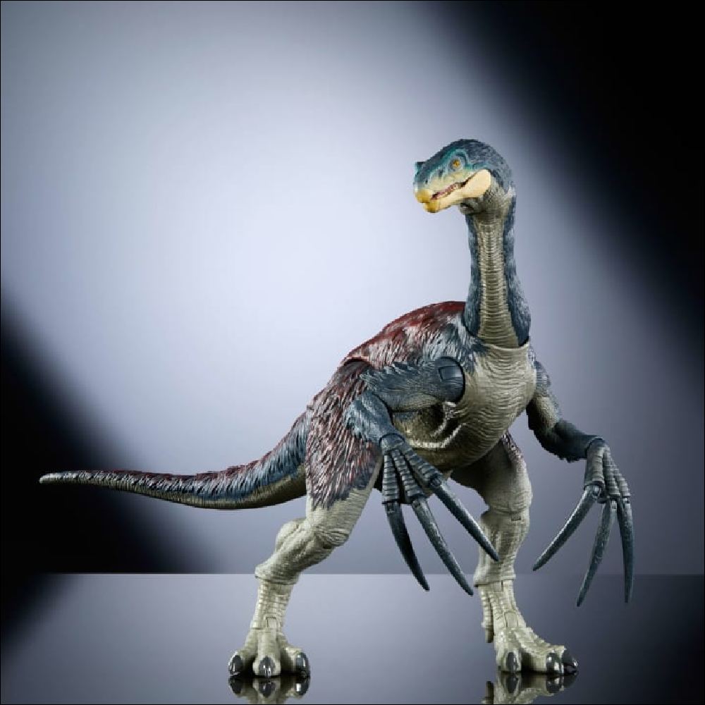 The Therizinosaurus, the menacing dinosaur from Jurassic World Dominion, expands the Hammond Collection. At more than 43-cm (17-inch) long, the figure has movie-authentic design. The 25 points of articulation include individual joints on each of its signature claws, and it also features premium glass eyes and wired tail to pose. The Therizinosaurus would look great in a display with other Hammond Collection figures.