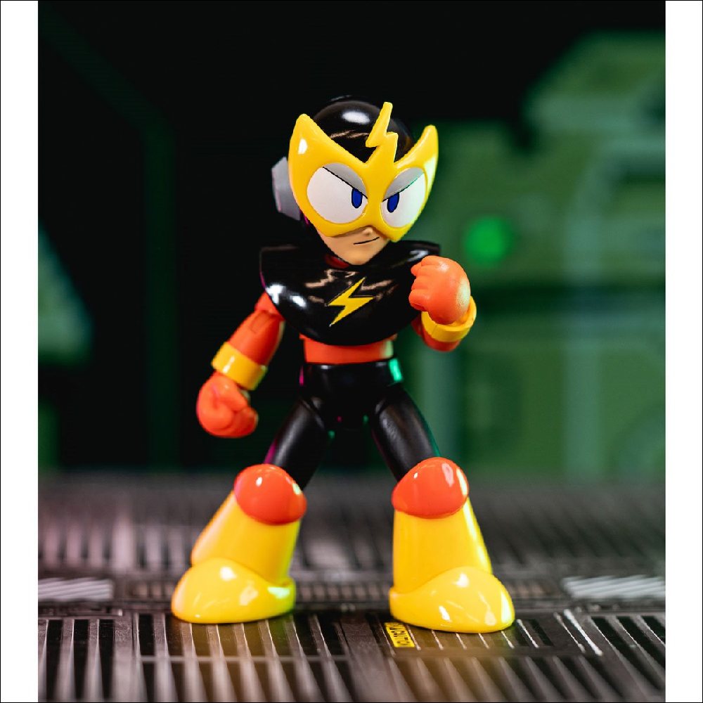 Created by Dr. Light to harness power from nuclear plants, Elec Man is agile, and mischievous with his Thunder Beam. He comes equipped with alternate hands, head, lighting bolt accessory, and a stand.